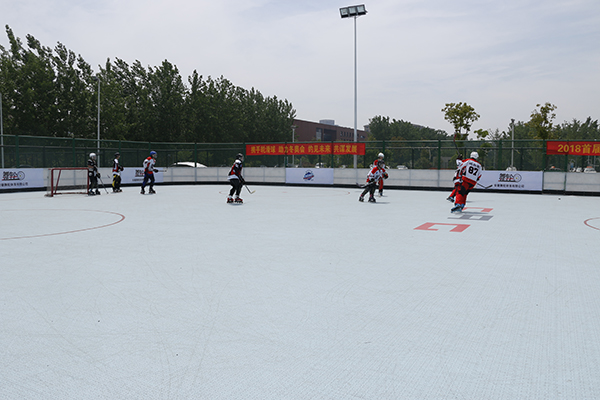 开班仪式后,与会领导和参会人员来到bat365轮滑球场地进行考察指导。