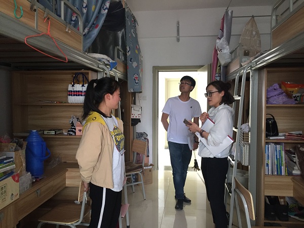 为提高学生公寓文化品位,促进大学生文明养成教育,外国语学院开展“文明宿舍创建”活动。辅导员深入学生寝室,检查、指导、帮助学生文明宿舍创建工作。