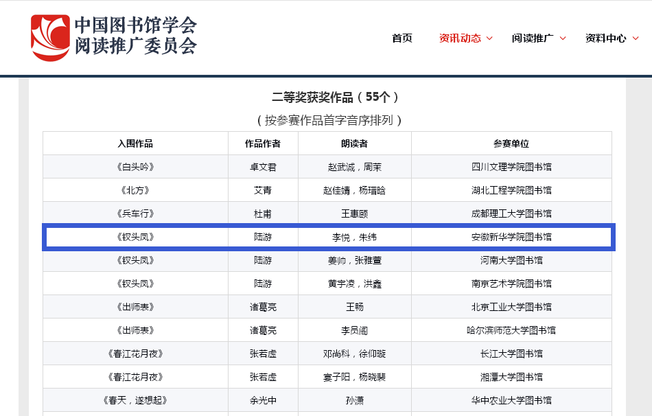 备注: 2018年全国大学生中华经典美文诵读大赛评选结果公布——中国图书馆学会阅读推广委员会官方网站:http://www.lib-read.org/news/reportshow.jsp?id=1521