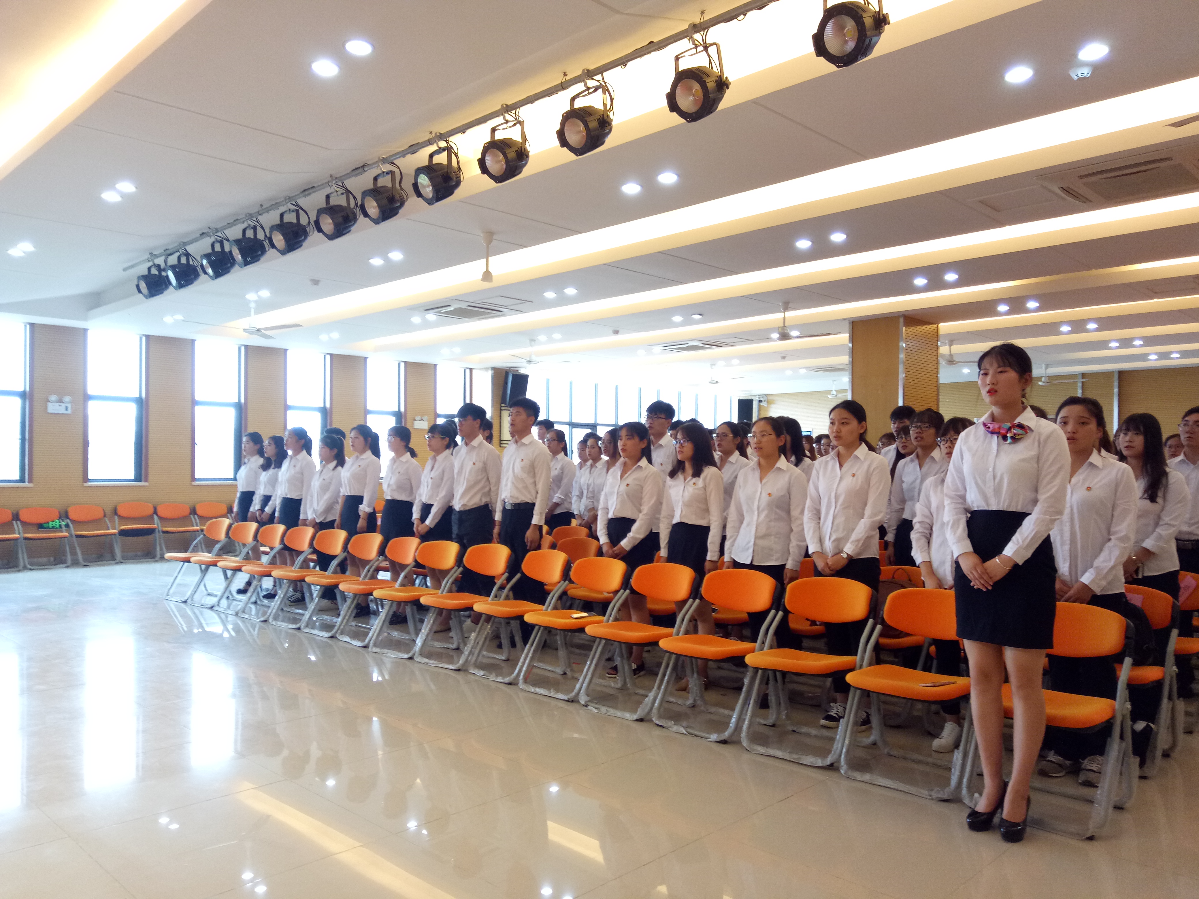 本网讯(通讯员:杨雨婷)6月7日中午,校团委青年党校第五期入党积极分子培训班结业典礼于三期活动中心小礼堂正式开幕。参加本次结业典礼的有学生处副处长、团委副书记柯姗姗,校团委青年党校培训班班主任杨雨婷,团委老师以及本次入党积极分子培训班104名学员。