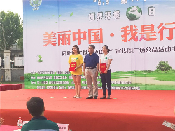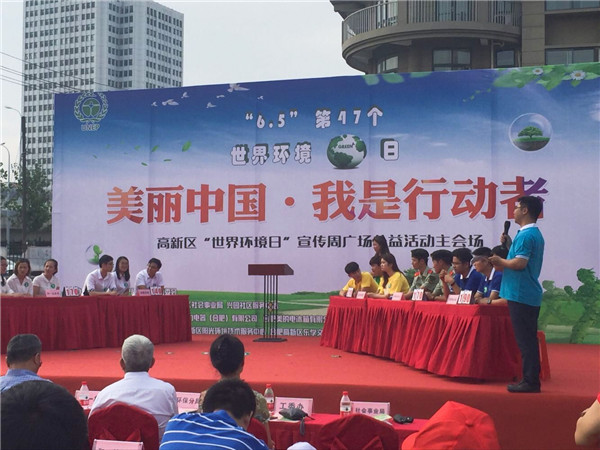 本网讯(通讯员:肖华君)6月5日,合肥市环保局、高新区管委会主办的“美丽中国·我是行动者”世界环境日主题宣传公益广场活动在合肥桂花园学校举行。bat365科技学院“暖心”志愿者服务队作为协办方共有30余名志愿者参加了活动。