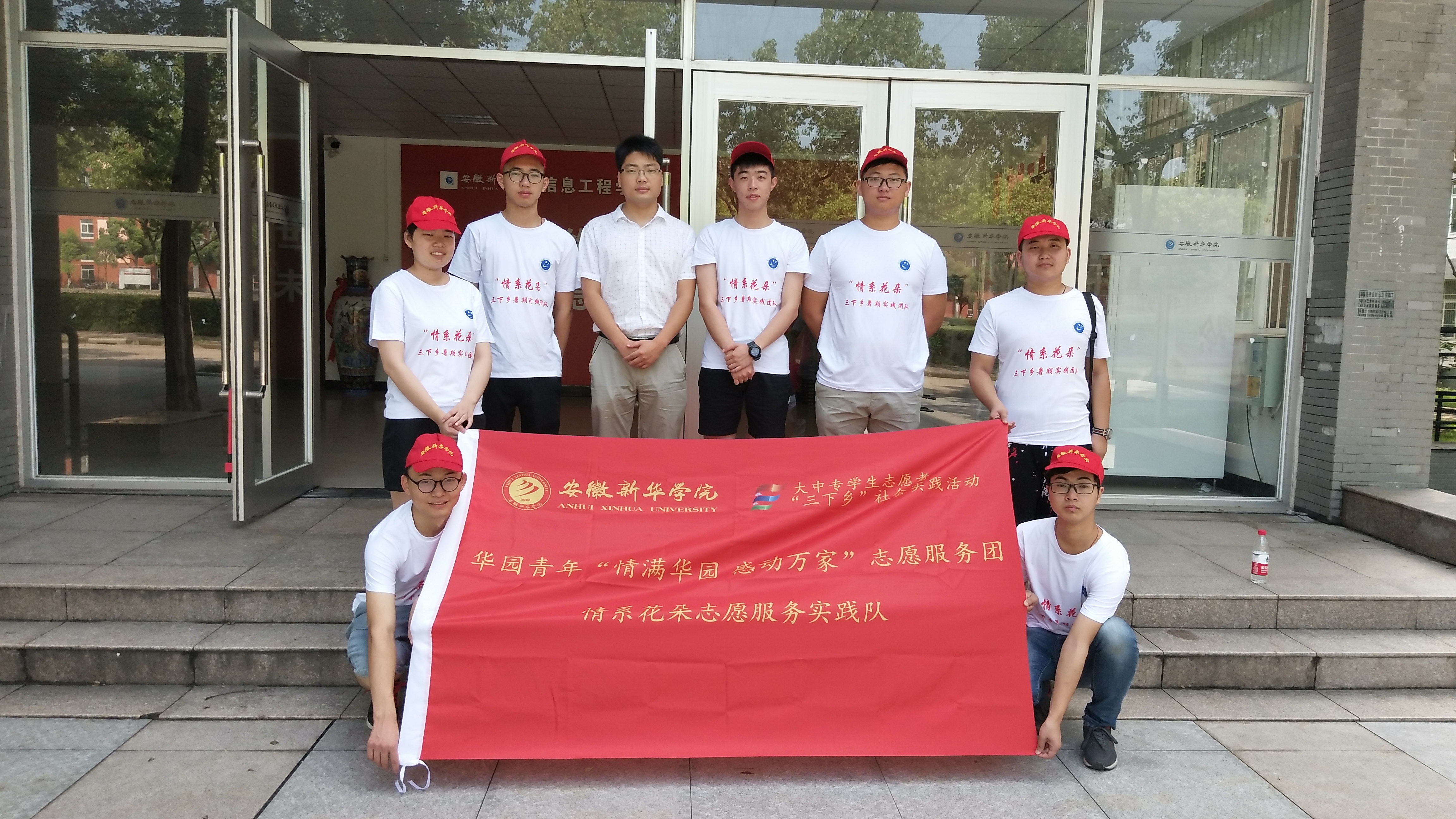 上午9时,信息工程学院情系花朵“三下乡”暑期实践团队队员们身着队服、高举队旗、整装待发。在出行会议上,指导老师时佩峰强调本次“三下乡”需将安全放在首位,并指出在保证安全的同时,保质保量地完成此次任务。