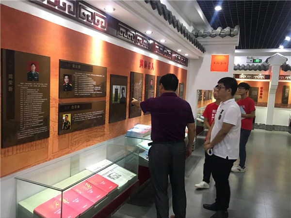 本网讯(通讯员:肖华君)为认真贯彻落实习近平总书记“红色基因就是要传承”重要讲话精神,扎实做好“不忘初心、牢记使命”主题教育活动,7月11日,由科技学院学生党员组成的华园青年扶贫攻坚实践团参观叶集区洪集镇展览馆并举行重温入党誓词活动。叶集区洪集镇党委委员汪泽、洪集镇会馆回民村村支书许继甫陪同参观。