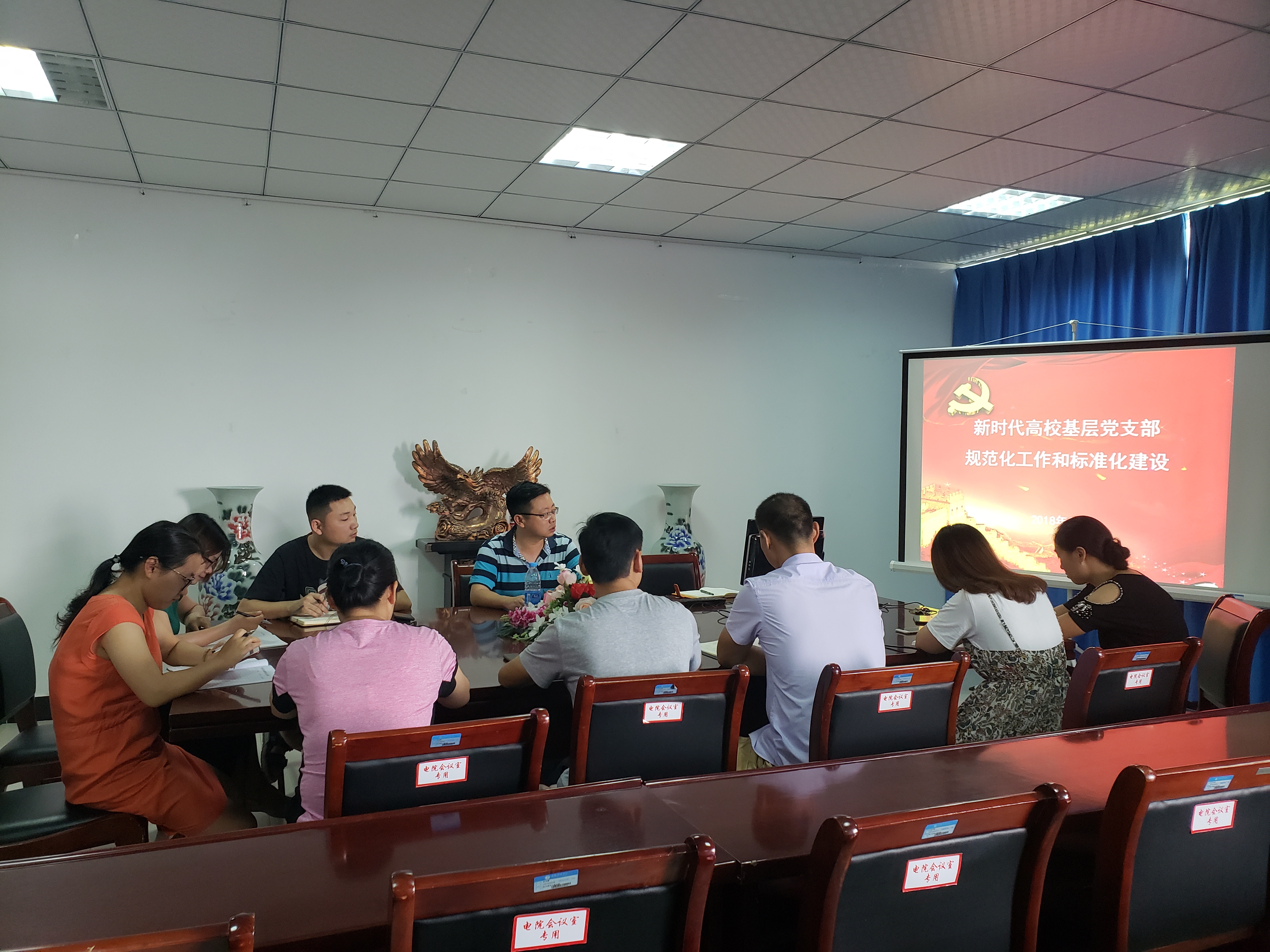 本网讯(通讯员:孙晗) 8月初,电子通信工程学院党总支在会议室召开基层党支部规范化工作暨标准化建设学习会。电子通信工程学院党总支书记计勇、副书记吕翔、党总支各委员及各支部书记参加了会议,会议由计勇主持。