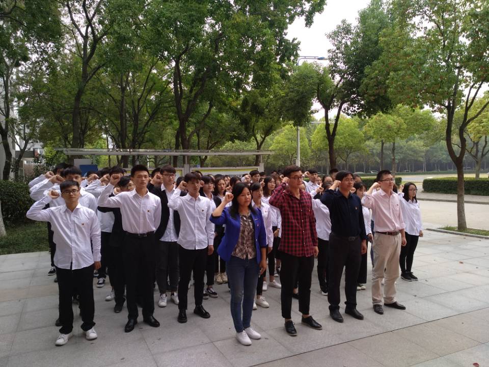 紧接着,在信息工程学院党总支组织委员彭智同志的带领下,所有党员高举右手,呈握拳姿态,重温了入党誓词。宣誓以后,全体与会人员在签名区郑重地写下了自己的姓名。