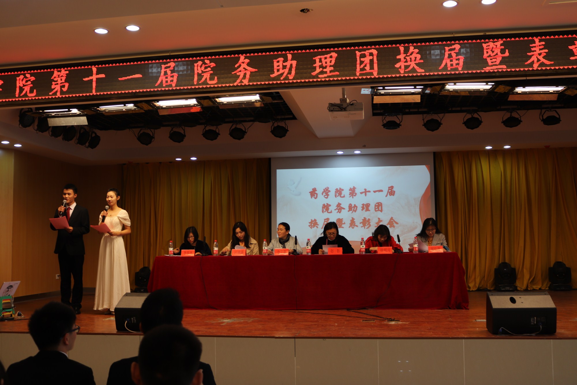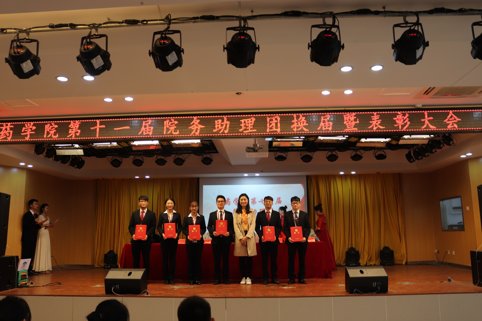 首先,大会在播放第十届药学院院务助理团工作和活动的视频中拉开帷幕,视频中往届助理团团长们表达了对助理团的期望和祝福。随后,学管秘书赵影、辅导员徐明月、李春杰分别宣读第十届药学院院务助理团优秀团长名单、优秀部长名单、第十届优秀个人名单、第十一届助理团团长名单并颁发证书。随后,行政秘书汪涵涵作指导讲话,她向辛勤工作的广大学生干部们表示感谢,同时对未来一年的工作提出希望,希望助理团多与老师沟通交流,把工作当做一种习惯,把学习当做一种乐趣,真正成为相亲相爱的一家人。第十届药学院院务助理团团长强仙霞作工作总结,新任团长徐彪和新生代表发言表态,表达了药学院第十一届学生干部学习继承上一届优秀工作作风的决心以及做好本职工作的信心。