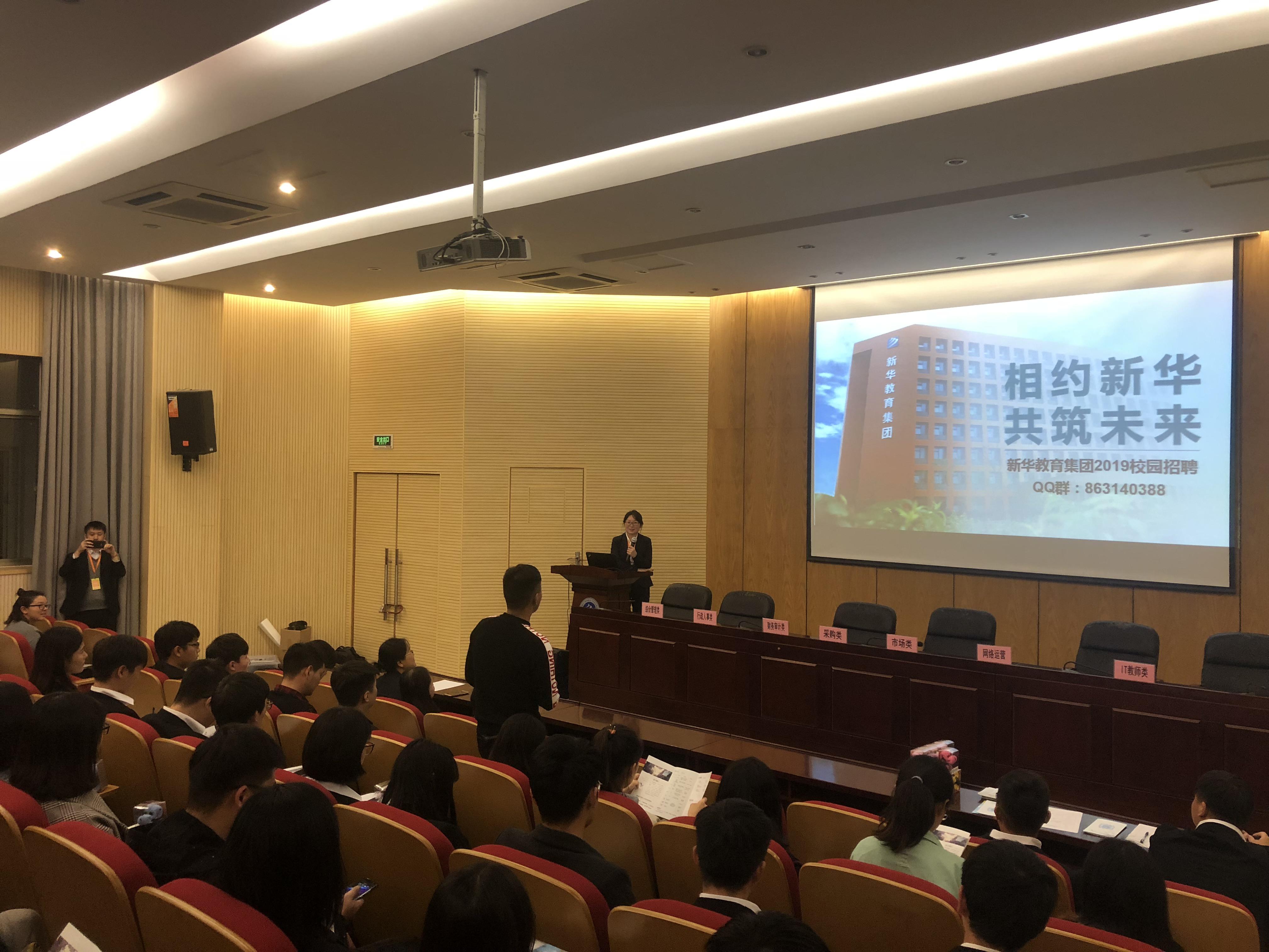 本网讯(通讯员:龚欣)为切实做好毕业生就业工作,大力构建毕业生与用人单位的交流平台,积极为用人单位输送应用型人才。10月18日晚,bat365学生处邀请安徽新华教育集团在学术报告厅举办了专场宣讲会,安徽新华教育集团人力资源部招聘经理康秋锦主持宣讲会并分享经验,各二级学院2019届优秀毕业生参加了此次宣讲会。