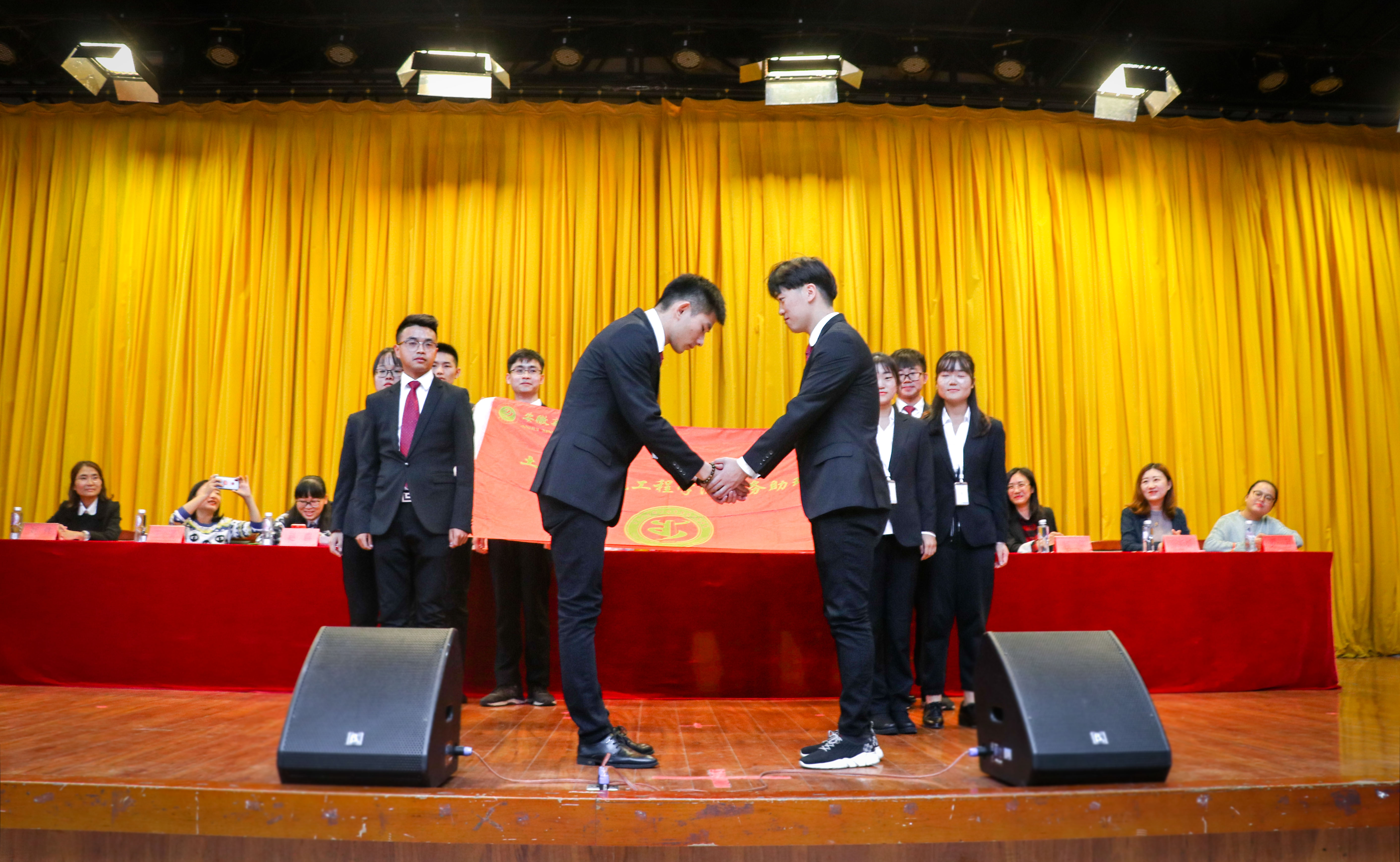 之后,大会宣读了2017--2018年度先进个人和优秀助理名单,对他们进行了表彰仪式并颁发荣誉证书,大会同时宣读了新一届助理团学生干部名单,并为他们颁发聘书。接着,新老团长交接团旗。新一届助理团团长赵启宣对助理团的工作作工作设想和未来规划。他表示,将带领新一届助理团干部坚持以“今天的事今天办、能办的事立刻办、困难的事想法办、重要的事优先办、限时的事高效办、琐碎的事抽空办、说过的事记着办、答应的事一定办”的工作理念,改进工作方式、方法,引领更多学生向更高、更好、更强的目标奋进。