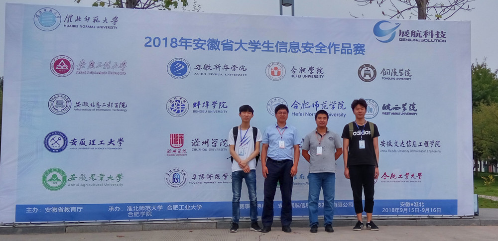 本网讯(通讯员:路贺俊)近日,2018年安徽省大学生信息安全竞赛落下帷幕,bat365信息工程学院学生刘对、张道应和张宇组成的“奕星战队”在网络攻防赛中获得二等奖1项,朱博杨、徐锦康、周杰、何广达组成“螃蟹小队”在信息安全作品设计获得三等奖1项,信息工程学院路贺俊和彭智担任指导教师。