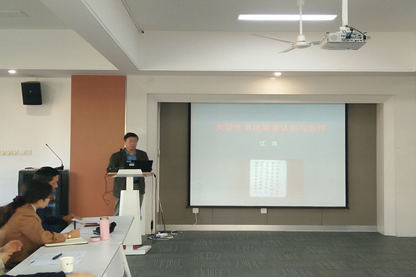 研讨会上,范东生、江河结合大学生人文素质教育分别作题为《中美高校人文素质课程设置对比分析》《大学生书法审美认知与创作》专题报告。范东生从比较的视角分析了中美高校在人文素质教育课程设置的差异,提出我国当前大学生人文素质教育面临的问题主要有格局地位、课程设置以及师资队伍三大挑战,并希望我们要从培养人的角度去重视人文素质教育;江河结合当前书法认知误区阐述了大学生书法教育的真正意义是让学生如何理解中国文化,从“文化根性”“阴阳观”等观念让大学生获得文化认同、文化自信及文化修养。随后,外语学院教师钱娟,文化与新闻传播学院教师李倩、唐芳明,国际教育学院曹群四位老师分别作题为“文学对大学生人文素质教育的培养作用”“优秀传统文化教育与大学生人文素质提升”“孔子的生命观对当代大学生生命教育的价值”“跨文化交际与大学生人文素质教育”主题发言。