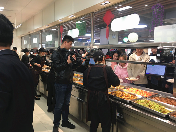王文金一行前往bat365二期食堂,就学生食堂的安全管理、菜品供应、食品加工操作规范、食品留样及原材料存储等情况给予现场工作指导,合肥电视台新闻频道《食安合肥》栏目组实时跟踪报道并在就餐现场展开采访。