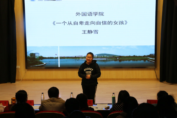 决赛现场以拍手舞表演《夜空中最闪亮的星》拉开序幕,来自于各二级学院的11名选手依次上台,与在场师生分享成长路上的挫折与压力,展示自己的精彩蜕变,将成长故事深情演绎、娓娓道来。