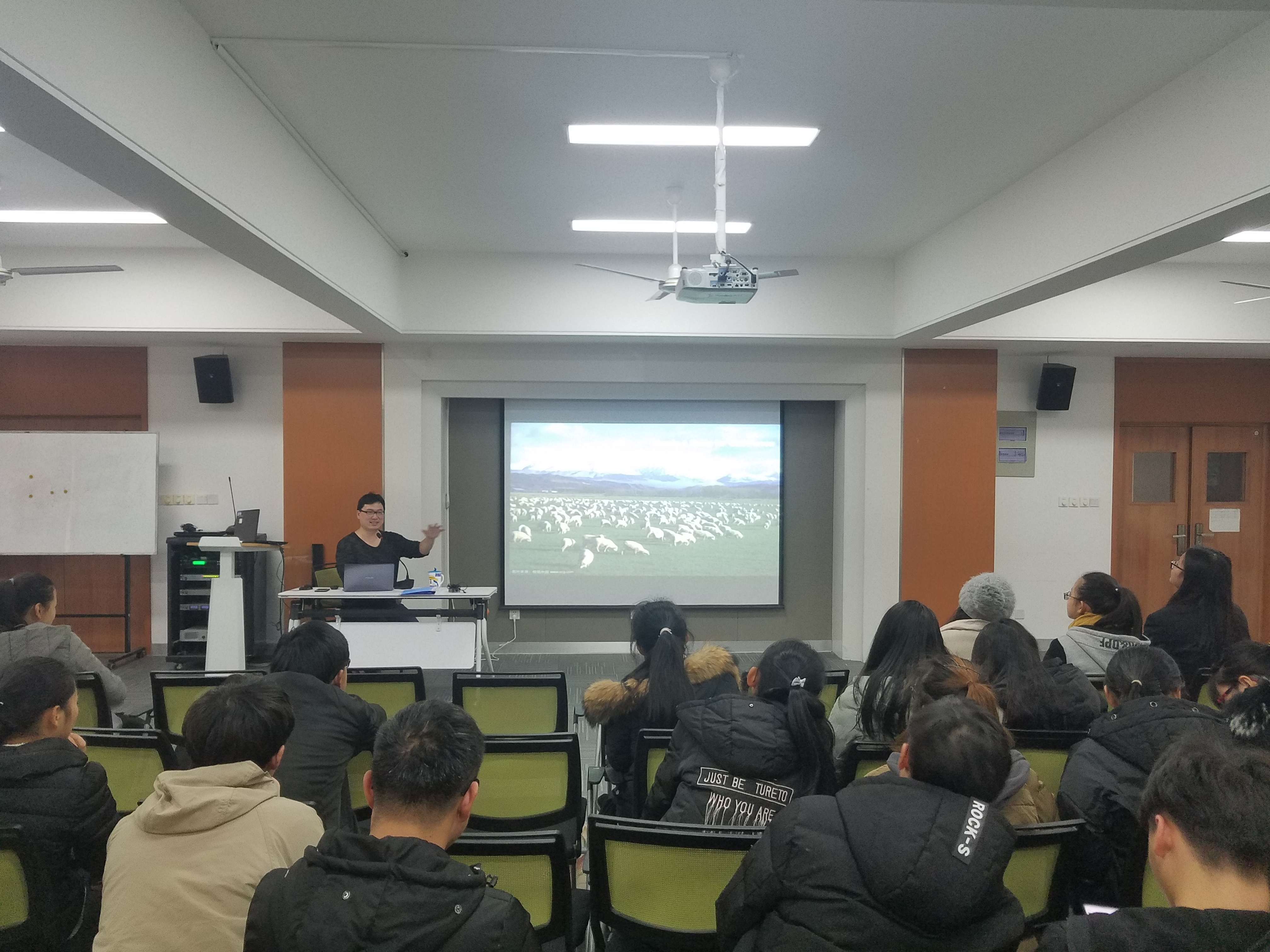 Mr. Ning首先介绍了“KIA ORA”的含义,这是毛利语中表示友好的意思。他还向同学们教授了生活中毛利人常用的一些问候语言。随后,他从新西兰的地理位置、人口、自然风光、动植物和日常饮食等多方面介绍了新西兰,指出新西兰也被成为“羊背上的国家”,虽然有很多牧民,但是仍旧缺乏劳动资源。他鼓励同学们去新西兰学习、工作。讲座中,Yuping Ning通过视频,向同学们介绍了新西兰闻名于世界的景点Queenstown。