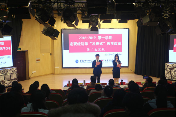 随后,分享会进行 “发表式”教学改革。据悉 “发表式”教学改革是王超于2015年9月首次提出的,旨在培养独立思考,激励学生利用课余时间对经济学现象进行研究、分析的教学方式。经过3年的不断完善,目前已经形成了较为完善的教学改革和考核改革体系。前期,王超前往福建参加了第三届全国商务经济学学科专业建设研讨会并在会议上作“基于‘导师制+工作室’的经济学专业创新人才培养模式探索与实践”主题报告,此次交流会也是经验的交流和传递。
