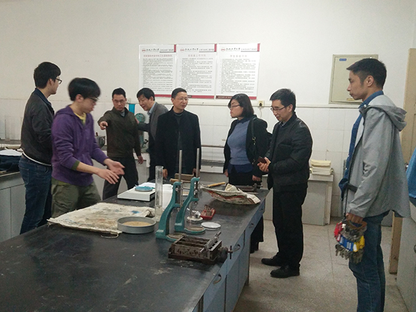 会谈结束后,在黄慎江的陪同下,考察组一行实地考察了安徽土木工程结构与材料省级实验室(建筑材料实验室与结构实验室)。据了解,该实验室建成于上个世纪六七十年代,现有试验器材有7000多台套,2008年被评为安徽省科技厅重点实验室,成立以来,承担了多项国家级、省部级科研课题,培养了众多博士、硕士研究生。