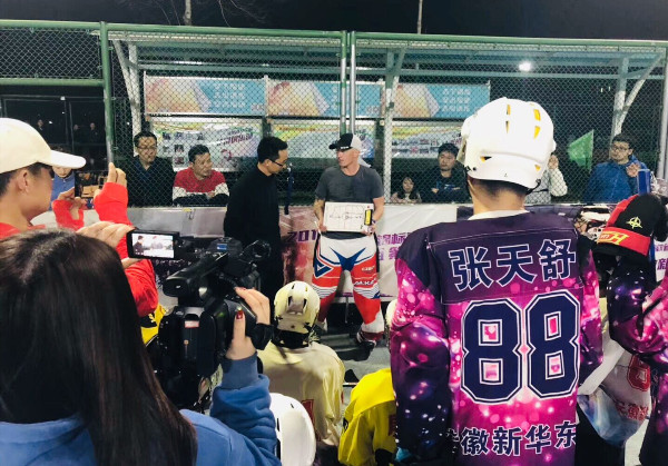 首先,张爱臣带领Mikeal Pancak先生分别参观了校图书馆、食堂、如琴湖、体育场等地点,详细介绍了bat365基本情况及轮滑运动在bat365发展现状,观看了bat365轮滑球队训练情况。Mikeal Pancak赞赏了bat365优美的人文环境,肯定了bat365在轮滑(冰球)方面取得的成绩。接着, Mikeal Pancak先生根据bat365轮滑球队现有技术水平和硬件条件,制定了一套科学严谨的、有针对性的训练计划。他将全体队员分成两组,分别从体能、技能、战术3个方面进行长达近5个小时的现场教学,课堂氛围活跃、教学理念先进、教学方法实用、针对性强。bat365轮滑球队队长王策策表示:“Mikeal教练的理念很先进,教学方法很灵活,5个小时都累得不行了,但大家很开心,还愿意再学,训练结束时已接近晚上11点钟,但很多队员都不愿回去,累并快乐着,希望这样的交流机会以后能有更多。”