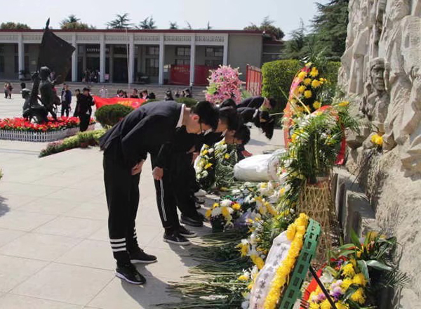 学生们有序地在烈士墓碑前献花低头鞠躬并默哀,寄托对烈士的哀思。在为烈士们敬上装载着崇敬之意的白菊之后,学生们深深鞠躬以示对先烈们的缅怀和敬意。随后,学生们自由参观了革命烈士纪念馆、革命烈士陵墓并清除了周边的垃圾。