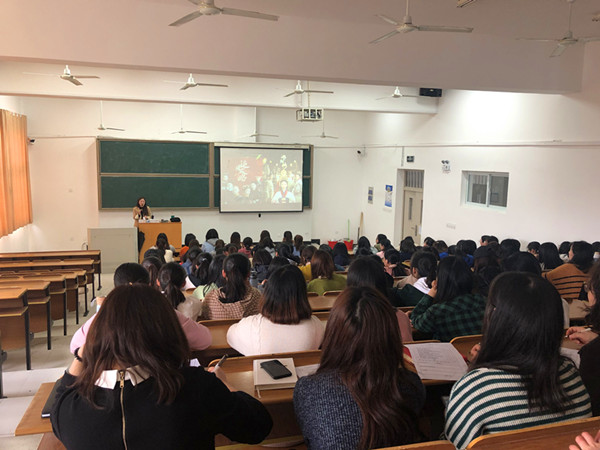 辅导员潘敏鸣从话题调研和主题话剧演绎的方式引导学生感受作为女生的幸福感。接着,她从独立、自尊、自爱、自护四个方面强调女性自我关爱、自我保护的重要性,帮助同学们学习如何保证人身安全、个人财物安全及宿舍安全,以及女性预防性侵犯的措施。