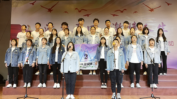 班歌比赛开始前,参赛班级齐聚如琴湖,同唱《光荣啊,中国共青团》,“我们是五月的花海,用青春拥抱时代;我们是初升的太阳,用生命点燃未来……”1000余人共唱青春的赞歌,声音洪亮有力,不断回响耳畔,萦绕着整个如琴湖。