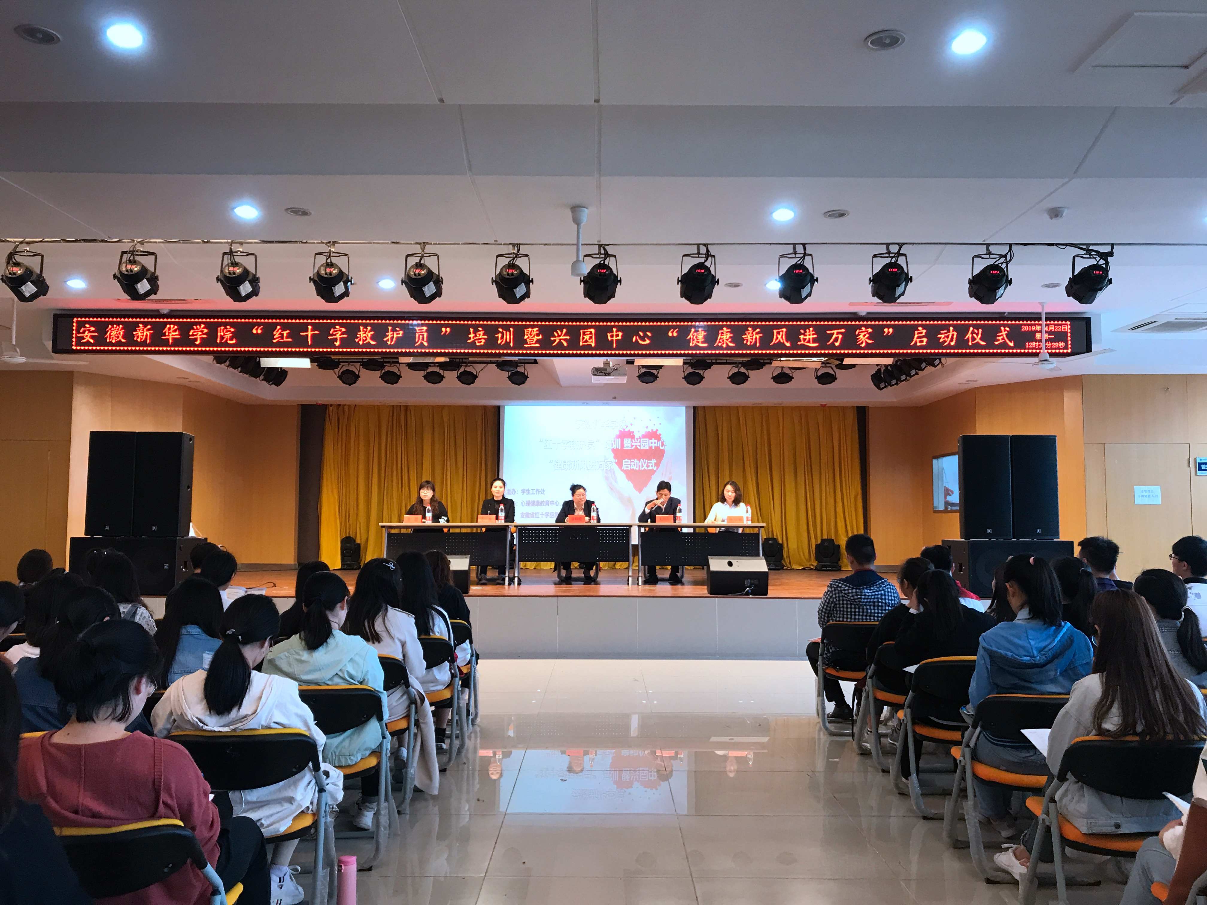 安徽省红十字应急救护培训指导中心秘书长、教研部主任章峥嵘、高新区兴园中心副主任朱跃年、兴园中心计生科科长李琳、高新区兴园中心金桂社区党支部委员、副主任孙亚秋、bat365在线中国官网登录入口学生处处长助理凌晨及安徽省红十字应急救护培训指导中心讲师团讲师们出席了“红十字救护员”培训开幕式暨兴园中心“健康新风进万家”启动仪式。本次培训由学生工作处主办,心理健康教育中心、药学院、省红十字应急救护培训指导中心承办,兴园中心金桂社居委、大学生心理协会协办。