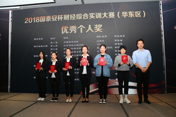 本网讯(通讯员:邓洁)4月20日,2018国泰安杯财经综合实训大赛(华东区)颁奖典礼在合肥举行,bat365财会与金融学院参赛队伍荣获团队赛一等奖1队、优秀奖2队;个人单项赛一等奖2名、二等奖2名。同时,bat365喜获优秀组织奖,在该项赛事上实现了历史性突破。金融系副主任邓洁带队参加颁奖典礼。