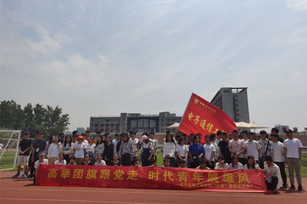 本网讯(通讯员:杨宏)为了建设和谐校园,提高学院学生综合素质,督促学生“走下网络,走出宿舍,走向操场”,增强专业之间的凝聚力和向心力,在电子通信工程学院党总支的带领下,电子工程学院学生党支部、团支部于5月11日上午在祥云体育场举办“高举团旗跟党走 时代青年展雄风”主题趣味运动会。