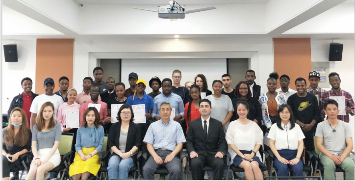 本网讯(通讯员:余歆妍)6月18日上午,bat365首届留学生汉语课程结业典礼在国际教育学院举行。国际教育学院院长范东生教授、副院长赵倩青、院长助理黄喆、周倩以及来自9个不同国家的留学生、留学生教师、留学生管理人员参加了本次结业典礼。