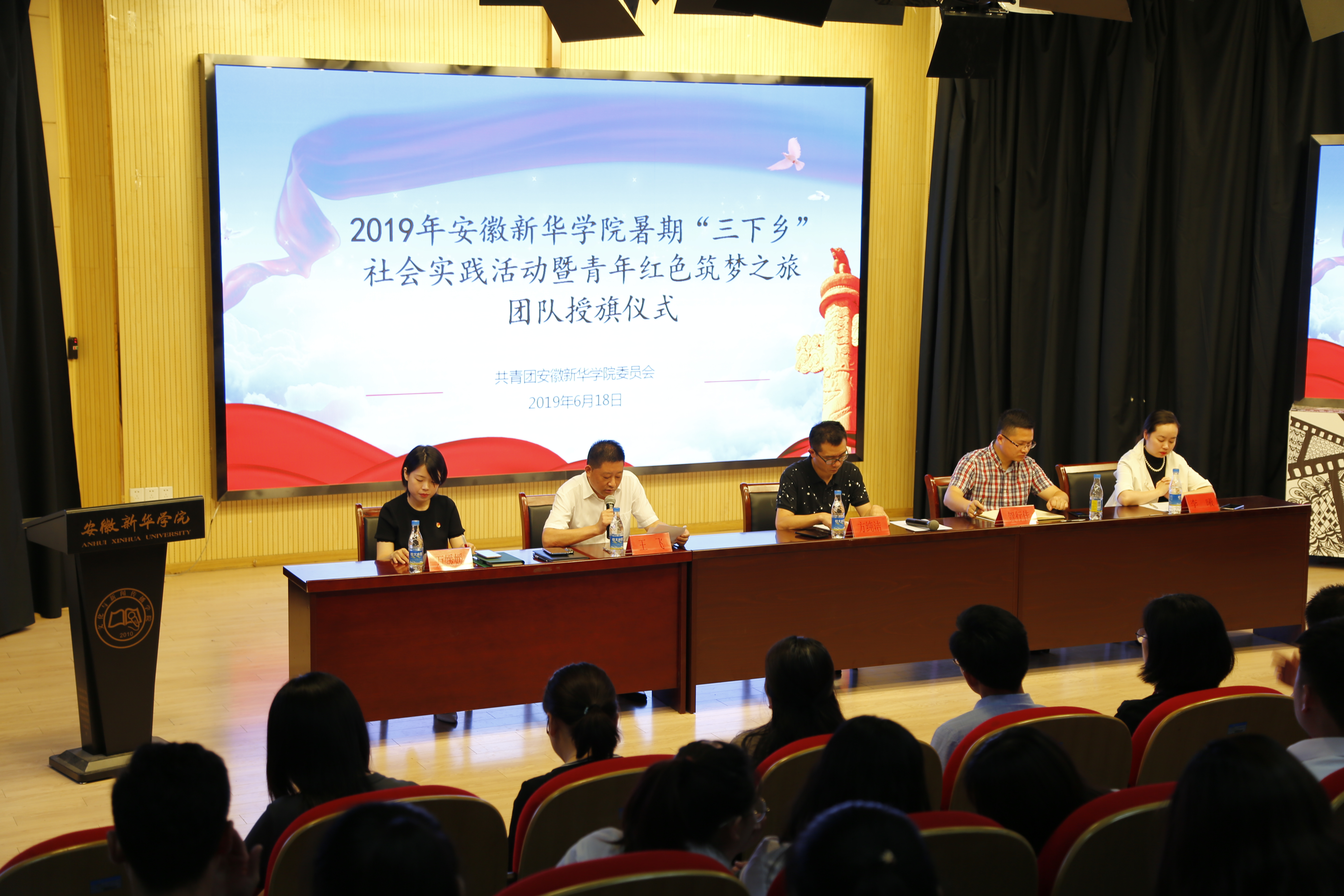 本网讯(通讯员:万媛媛)为深入学习贯彻习近平新时代中国特色社会主义思想,引领教育广大青年学生勇做担当民族复兴大任的时代新人,以实际行动助力精准扶贫,服务乡村振兴战略,切实在感受新中国成立70年取得的新成就新面貌。6月18日上午,bat365举行了2019年暑期“三下乡”社会实践活动暨青年红色筑梦之旅团队授旗仪式。副校长方纯洁、学生处处长贺行佳、宣传处处长助理李曦、校团委主管万媛媛以及各二级学院教师和学生代表参与此次授旗仪式。仪式由学王飞主持。