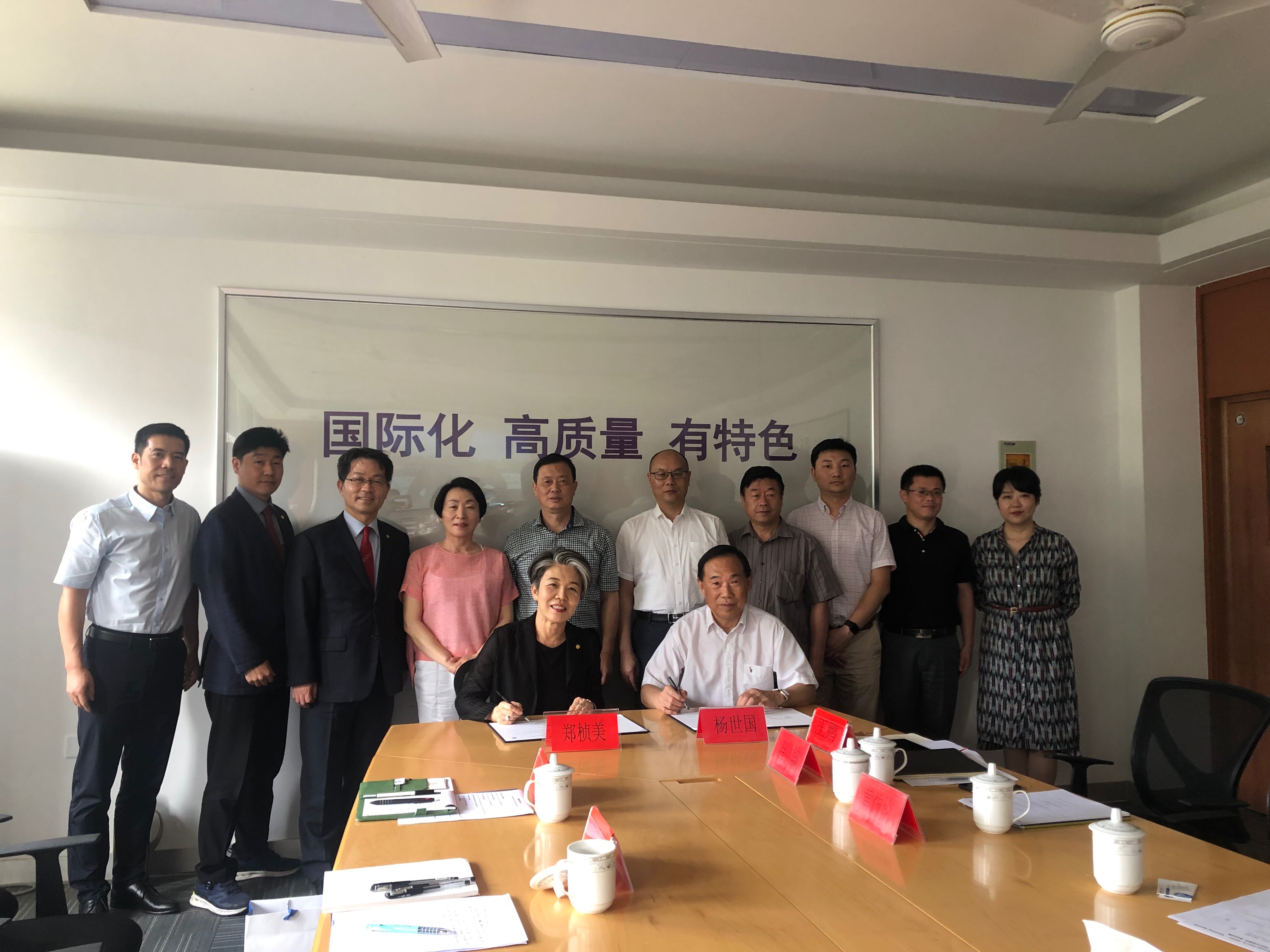 杨世国对郑桢美一行的来访表示热烈欢迎,并向客人介绍了学校的发展情况,对郑校长亲临新华学院签订合作备忘仪式表示赞赏和感谢,并希望双方趁热打铁,尽快启动项目、展开合作。