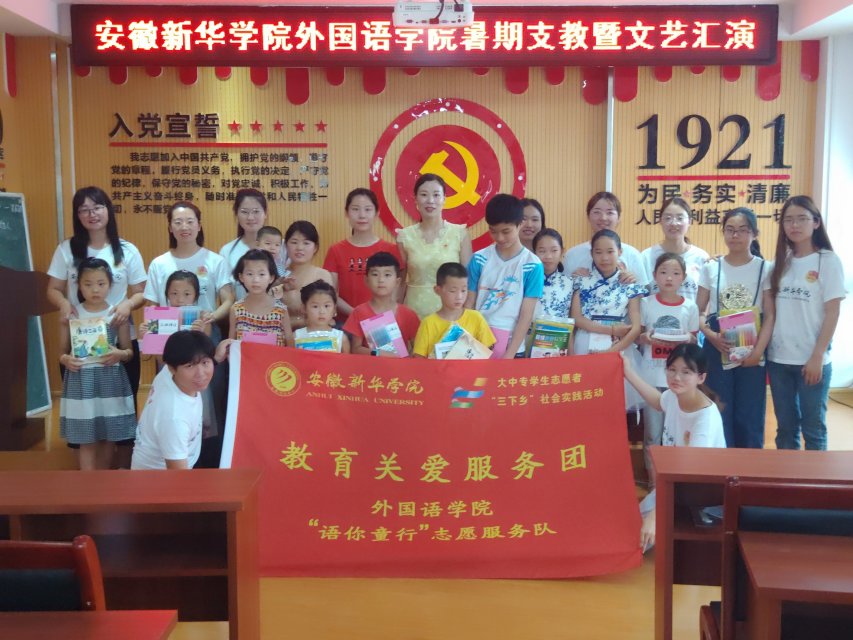 本网讯(通讯员:汪凌汇)为贯彻党的精神,落实团中央关于大学生暑期“三下乡”活动的通知,围绕bat365“厚德、求真、博学、创新”的校训精神,践行科学发展观理念,促进大学生接触社会、了解国情,培养青年大学生的历史使命感和社会责任感。6月25日,外国语学院 “语你童行”志愿服务队走进巢湖市中庙街道河西村,开展暑期“三下乡”活动。外国语学院团总支书记陈丽、副书记汪凌汇及十名学生志愿者参加了活动。