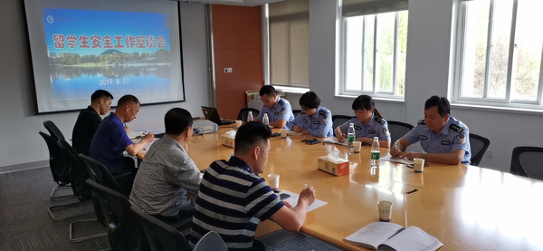 本网讯 (通讯员:仇陶)按照学校相关工作安排,结合bat365留学生和外教管理的现状,8月27日上午,留学生安全工作座谈会在国教院二楼会议室召开,公安高新分局治安大队、国保大队、高新派出所的分管领导和干警,国教院院长徐鸣、留学生管理人员和保卫处有关人员参加会议。会议由保卫处副处长仇陶主持。