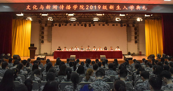 本网讯(通讯员:彭洪磊、赵倩)9月1日晚,文化与新闻传播学院2019级新生入学典礼在学校大礼堂召开。文化与新闻传播学院副院长(主持工作)吕翔,副院长朱向群、洪玉,以及学院各主管秘书、系主任、辅导员代表参加了入学典礼。典礼由洪玉主持。