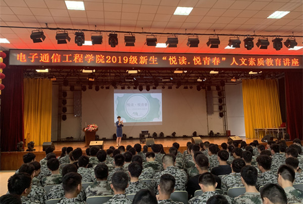典礼结束后,辅导员代表张笑鸿开展了“悦读·悦青春”人文素质教育讲座,号召广大新生热爱读书,以书会友,拉近同学的距离,展现电子通信工程学院良好的学习氛围。