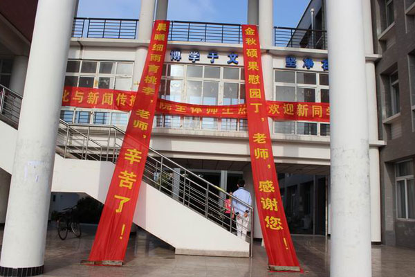 9月10日早上,与往日不同,同学们都起的很早,自发的排成长队站在文化与新闻传播学院老师们必经的门口。只为亲口向自己敬爱的老师们说一句:“老师,辛苦了!节日快乐!”