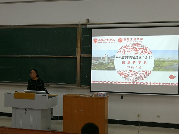 (通讯员:刘丽、徐梅)为推进2020届毕业论文(设计)工作的顺利开展,帮助学生顺利完成毕业论文(设计),10月9日下午,信息工程学院计算机科学与技术系和信息科学系召开了2020届本科毕业论文(设计)动员大会。系副主任刘丽、徐梅,相关专业负责人、教研室主任及信息工程学院各专业全体学生参加了此次动员会,会议分别由系主任刘丽和徐梅主持。
