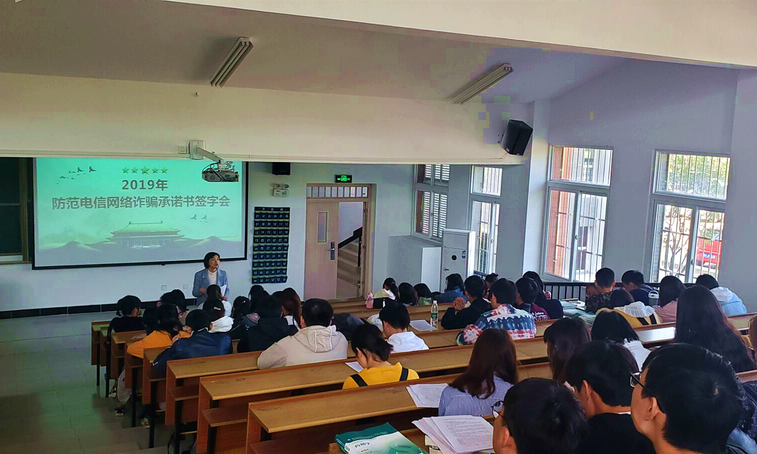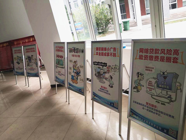 药学院通过线上线下等渠道深入宣传防范电信网络诈知识。各班级精心组织主题班会,学习防诈骗知识、观看防诈骗宣传视频、组织学生签订防范诈骗安全承诺书等;在保卫处的支持下,摆放了防诈骗宣传展板;院学生还绘制张贴防诈骗宣传海报;电子屏流动播放防范要点等。