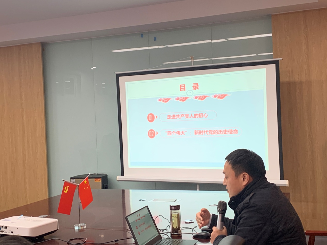 杨光从中国共产党的诞生说起,带领大家回顾了红船精神,即:开天辟地、敢为人先的首创精神,坚定理想、百折不挠的奋斗精神与立党为公、忠诚为民的奉献精神。回顾了共产党成立之始就本着全心全意为人民服务的宗旨,以“为中国人民谋幸福、为中华民族谋复兴”的初心和使命,带领全国人民实现了新中国由站起来到富起来再到强起来的发展历程,但当前面临纷繁复杂的国内外形势,要实现“两个一百年”奋斗目标,要把国家建成富强、民主、文明、和谐、美丽的社会主义现代化强国,还需要进行具有新的历史特点的伟大斗争,推进加强和改进党的建设新的伟大工程,推进中国特色社会主义的伟大事业,最终才能实现中华民族伟大复兴的伟大梦想。
