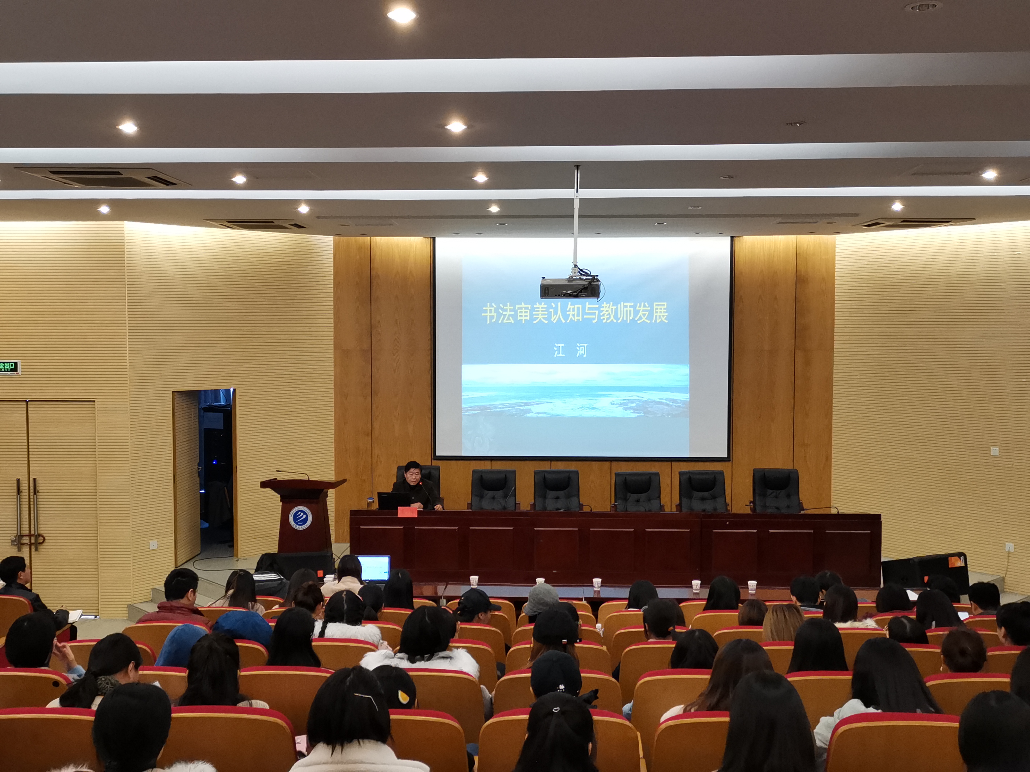 讲座中,江教授从书法审美概念、书法审美认知对教师发展的促进作用,教师如何运用书法审美认知促进发展三个方面系统为师生们阐述了书法的审美认知与对教师职业的促进作用,并用历史上著名书法家的书法作品给教师们分析讲解其中的中国文化根性,通过书法作品探寻找书法创作的基本规律。尤其是通过运用书法审美认识,掌握收敛与拓展的共存规律,可以促使教师深入观察与理解自然、社会变化规律,在教师职业中建立起与师生和谐相处关系,并在专业探索、教学改革、成果积累和职业保健等方面促成更有效的实践。