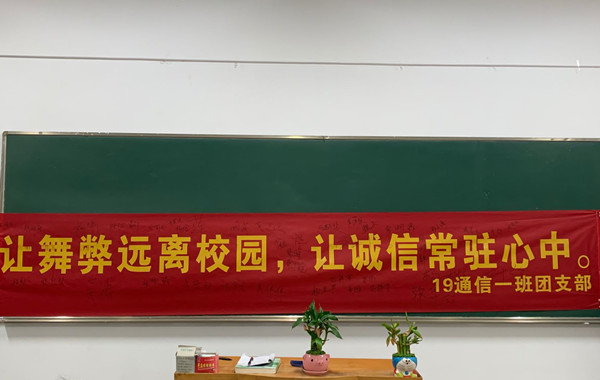 最后由各班级同学以自己的方式方法响应学院号召,展现自己诚信迎考的决心。由班长、团支书带领同学开展的一系列的“诚信考试”活动随之而来,例如带领同学们认真学习有关诚信考试的校规校纪;在班级举行“诚信考试、拒绝作弊”宣誓;开展“诚信考试承诺书”签字仪式;建立复习小组,帮扶迎考等等。相信在即将到来的期末考试中,同学们一定能够以积极饱满的态度,诚信迎考,创造佳绩。
