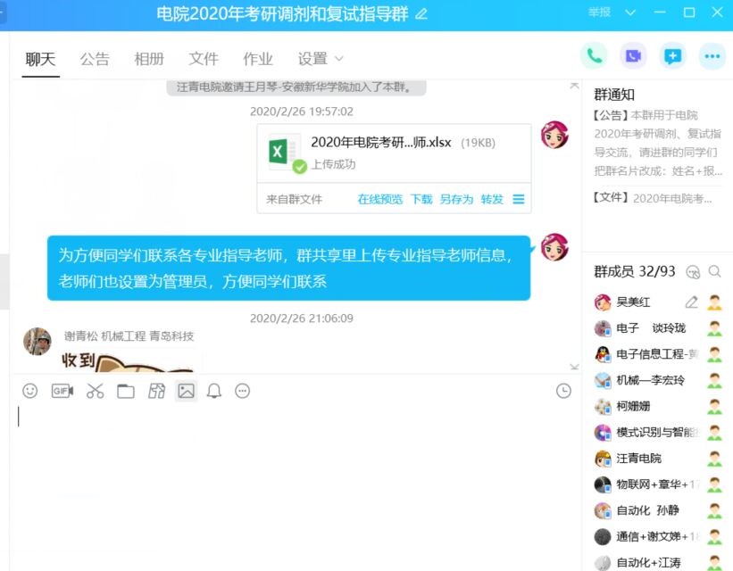 除此之外,学院快速建立电2020年考研调剂和复试线上服务团队,通过建立qq群进行线交流,从学院四个系分别挑选1-2名有经验、有热情的专业教师,为考研毕业生提供线上咨询、解疑答惑。