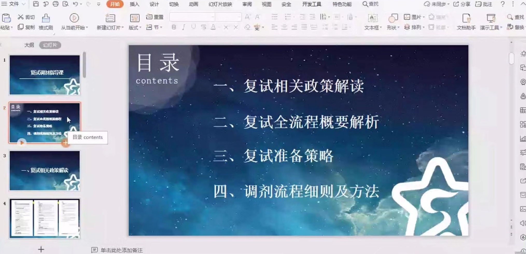 王为科有丰富的从业经历和研究生指导经验,他分别从复试相关政策解读、复试全流程概要解析、复试准备政策、调剂流程细则及方法四个方面全面解读复试及调剂技巧。分析了往年复试成功和失败的案例,形象的说明了复试过程中的注意事项、沟通的方式方法以及着装礼仪。