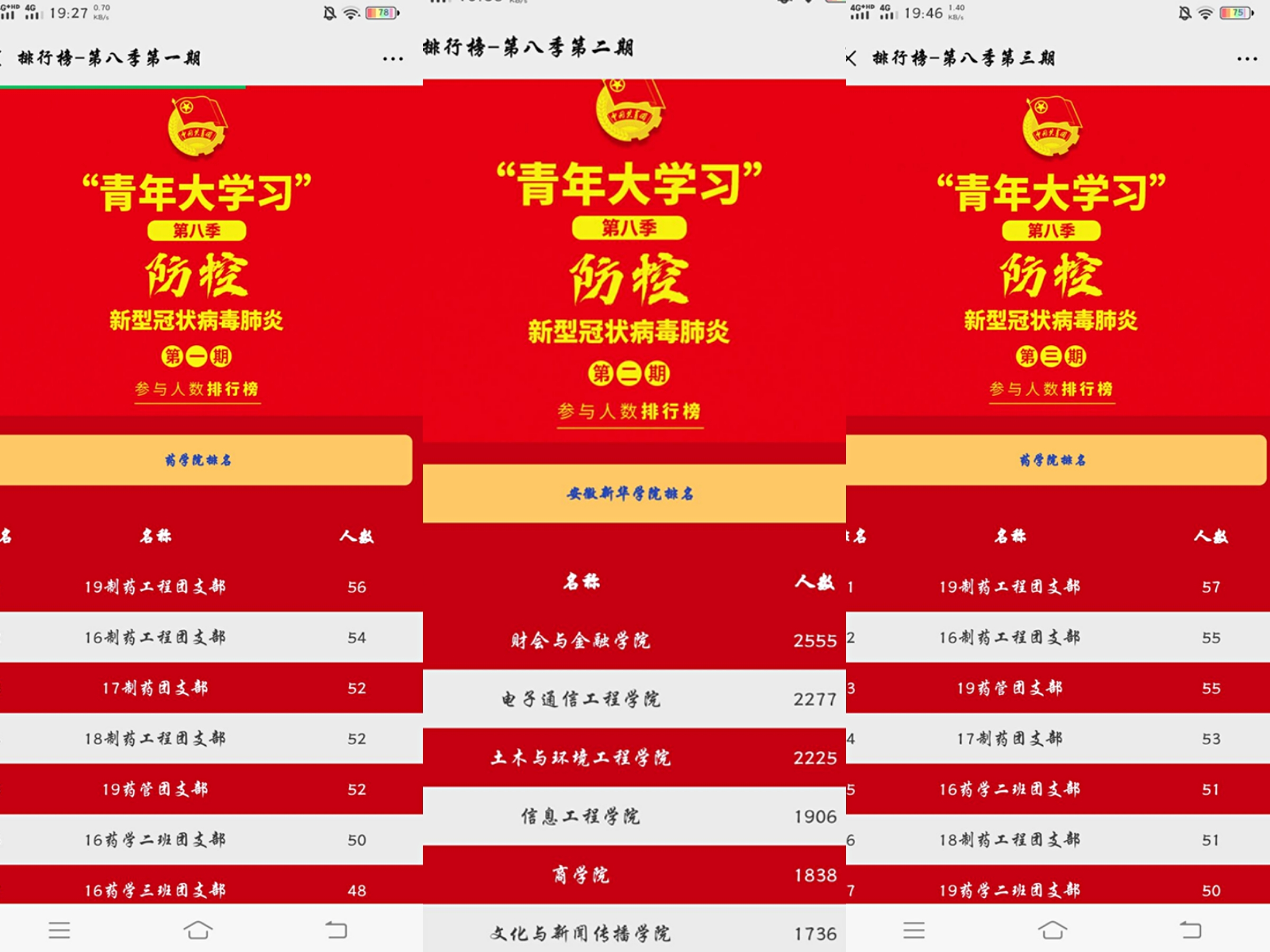 药学院从第八季第一期开始,就努力营造浓厚氛围,学习覆盖面达97.73%。在疫情期间,团员们及时了解疫情、国情,有利于激发青年向上向善,团结一致,共同抗疫,有利于筑建学生积极心态。