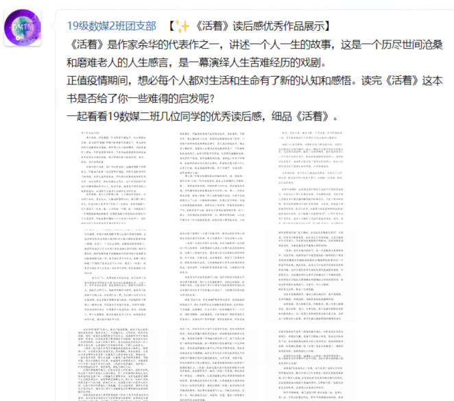 隔离病毒不隔离阅读,疫情期间团总支还积极鼓励各团支部阅读书籍,并结合疫情现况发表自己的所思所想所感,丰富信工学子疫情防控时期的文化生活,同时鼓励大家用读书传递信心,用知识做好防护,用精神凝聚力量,同心抗疫。