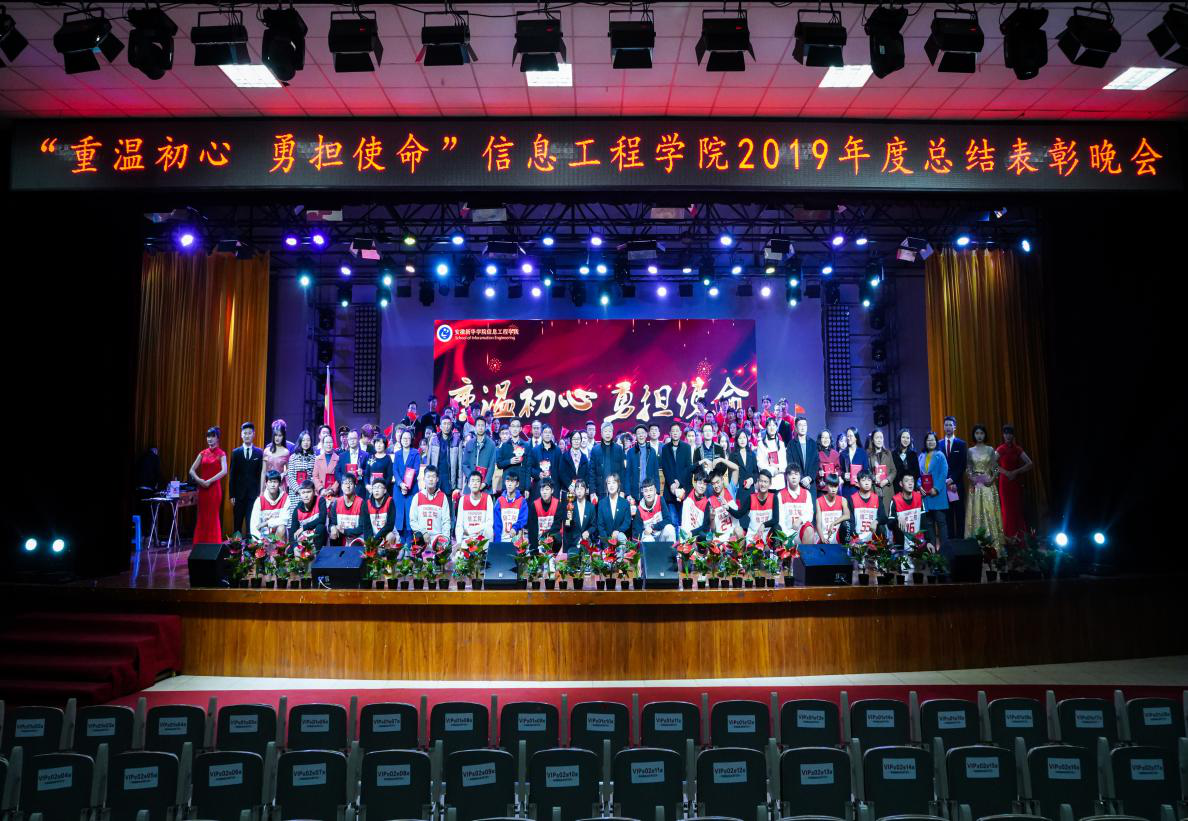 为进一步推进“不忘初心、牢记使命”主题教育活动,信息工程学院于2019年年底举办了“重温初心,勇担使命”2019年度总结表彰晚会。对于“优秀党务工作者”、“先进教育工作者”、“先进共产党员”、“活力、示范团支部”、“先进班集体”等在工作岗位上无私奉献的老师们进行表彰,在学习、竞赛以及各类活动中表现优异的同学们进行鼓励。值得一提的是信息工程学院2016级软件工程2班学生石玉阳更是树立典型,荣获2018 年全国大学生“自强之星”称号,我院王思康获评2019年全国西部优秀志愿者称号。