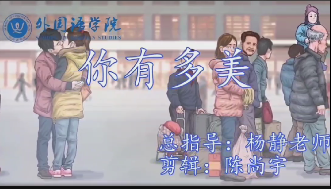 视频拍摄的前期,外国语学院学生积极遴选歌曲,最终一致选择了《你有多美》。选曲结束后,在学院专业老师的指导下,学生完成了歌词翻译。接着,学生自发利用朋辈教育的方式,让唱歌水平较好的同学帮助水平较弱的同学,更好的完成歌曲演唱上的衔接与转换。历时半个月的练习后,同学们接连录制了两版的音乐,确定了最终版本。虽然由于制作技术的制约,外国语学院学生还是凭借着“不抛弃、不放弃”的精神,推倒了十多个版本后,最终呈现出了一个质量较好的视频。视频一经播放,立即得到了师生的广泛转发和好评。