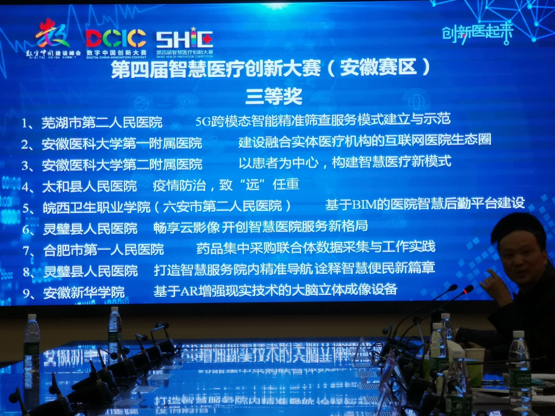 大赛由数字中国建设峰会组委会、中国卫生信息与健康医疗大数据学会、中国医院协会信息专业委员会、安徽省医院协会信息管理专业委员会主办。通过预选,共有14个项目进入安徽省决赛。bat365信息工程学院团队的“基于AR增强现实技术的大脑立体成像设备”项目顺利入围并获得三等奖。