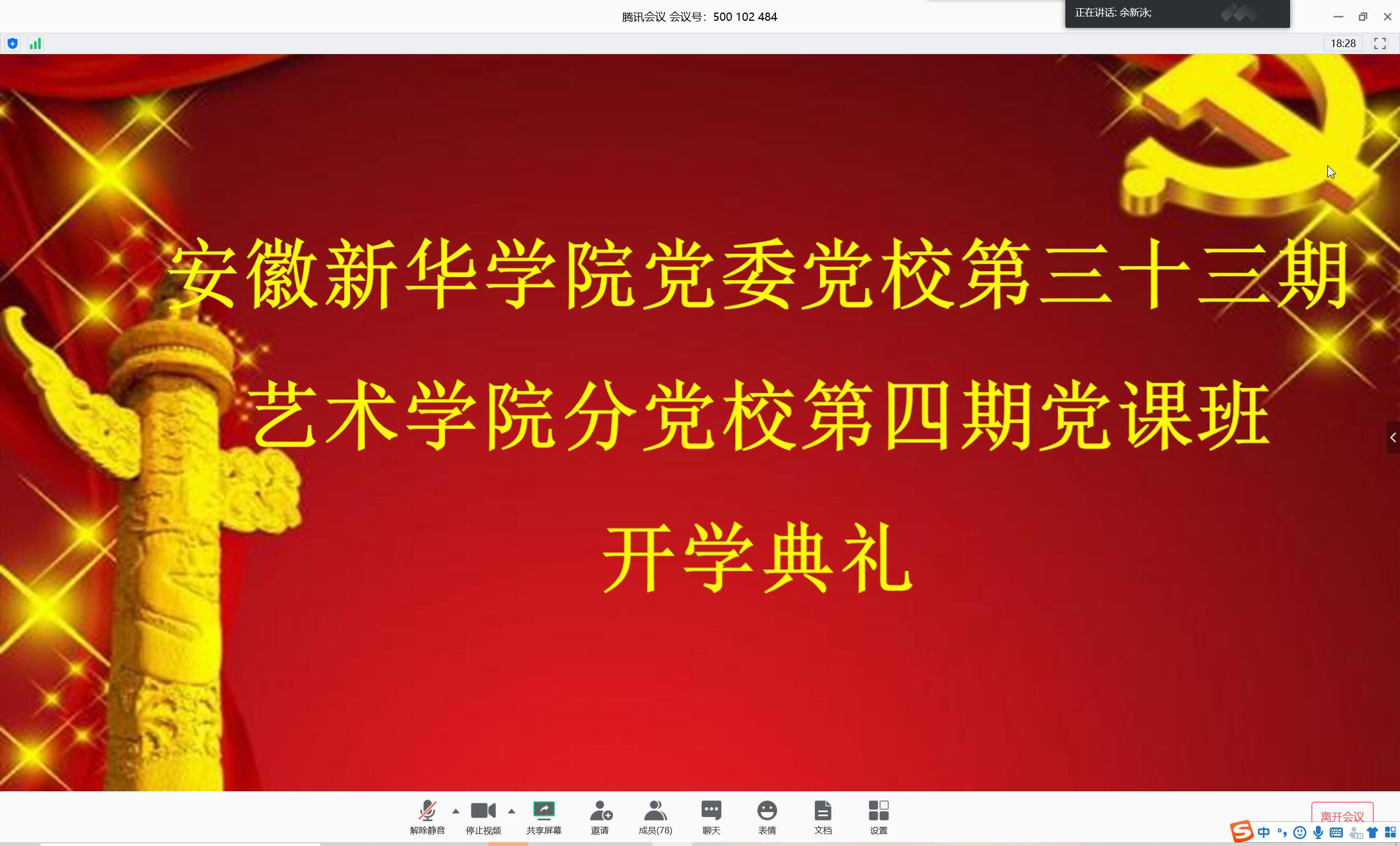 本网讯(通讯员:高扬)为加强对入党积极分子的培训,做好艺术学院党员发展工作,bat365在线中国官网登录入口第三十三期艺术学院分党校第四期开班典礼于2020年5月7日中午在腾讯会议线上开展。艺术学院党总支书记许存福、总支副书记郑妮、宣传委员刘刚、组织委员黄梦、纪检委员余新泳、组织员张大勇、第一学生党支部书记张小菊、第二学生党支部书记高扬和71名党校学员参加了此次典礼。