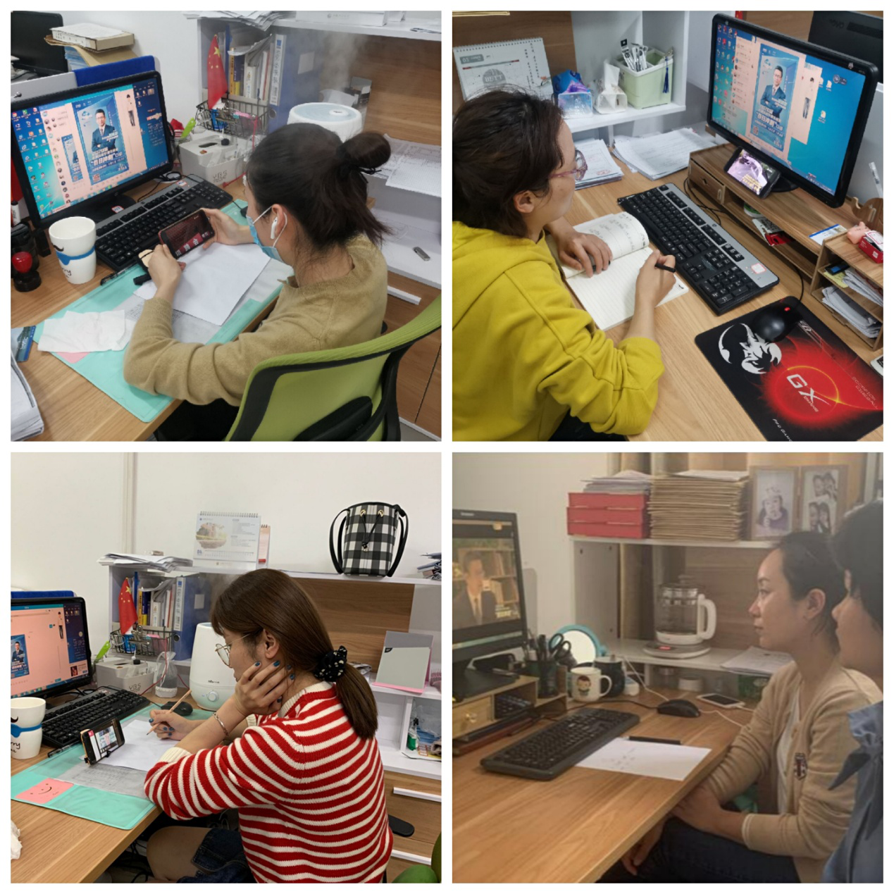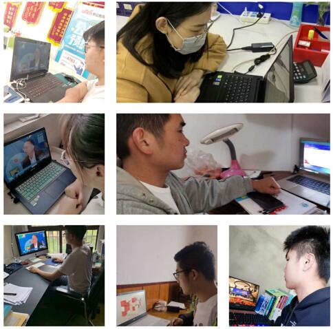 图为bat365教师认真观看直播节目