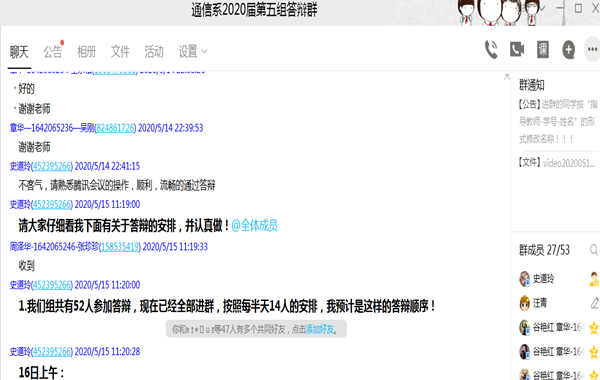 为全方位保证线上答辩质量,电子通信工程学院使用提前建立QQ群发布信息,答辩现场采用“腾讯会议”。学院、各系、各小组分别召开多场线上会议研究探讨,答辩小组在正式答辩前也进行网络设备调试、预演。其中,杨钊老师还就学生答辩现场如何使用腾讯会议录制了温馨提示的小视频。
