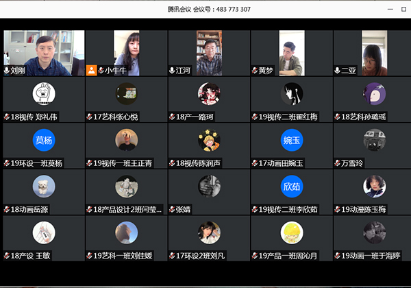 本网讯(通讯员:杨蕊)为进一步提升教学质量,了解教学中存在的问题及学生学习状态,近日,艺术学院召开2019-2020学年度第二学期期中教学检查学生线上座谈会。艺术学院院长江河、院长助理刘刚、教学秘书王静、行政兼学管秘书黄梦、教务员程梦君及学生代表参加了本次线上座谈会。